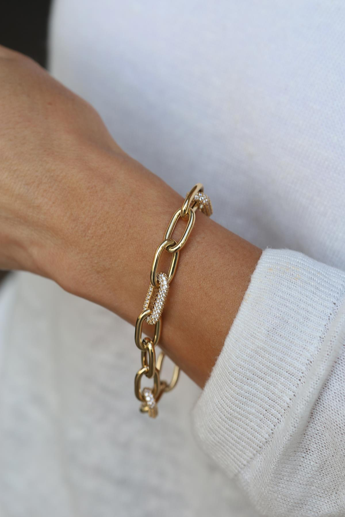 Yenigün Kuyumculuk14 Ayar Altın Arası Taş Kaplama Ataç Zincir Bileklik